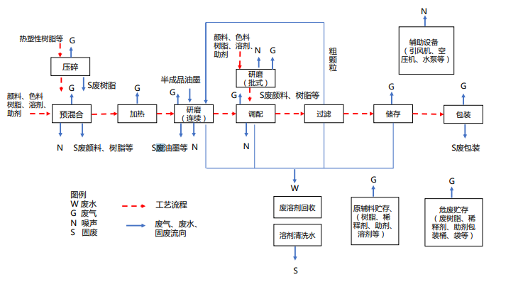 1. 源头削减:鼓励企业生产水性、辐射固化、粉末、高固体分、无溶剂等低 VOCs 含量涂料。鼓励企业生产水性、辐射固化、植物基等低 VOCs 含量油墨。 ·鼓励企业生产水基、热熔、无溶剂、辐射固化、改性、生物降解等低 VOCs 含量胶粘剂。另外,请参考涂料、油墨及胶粘剂制造业生产工艺与有机废气污染物排放环节示意图如下: